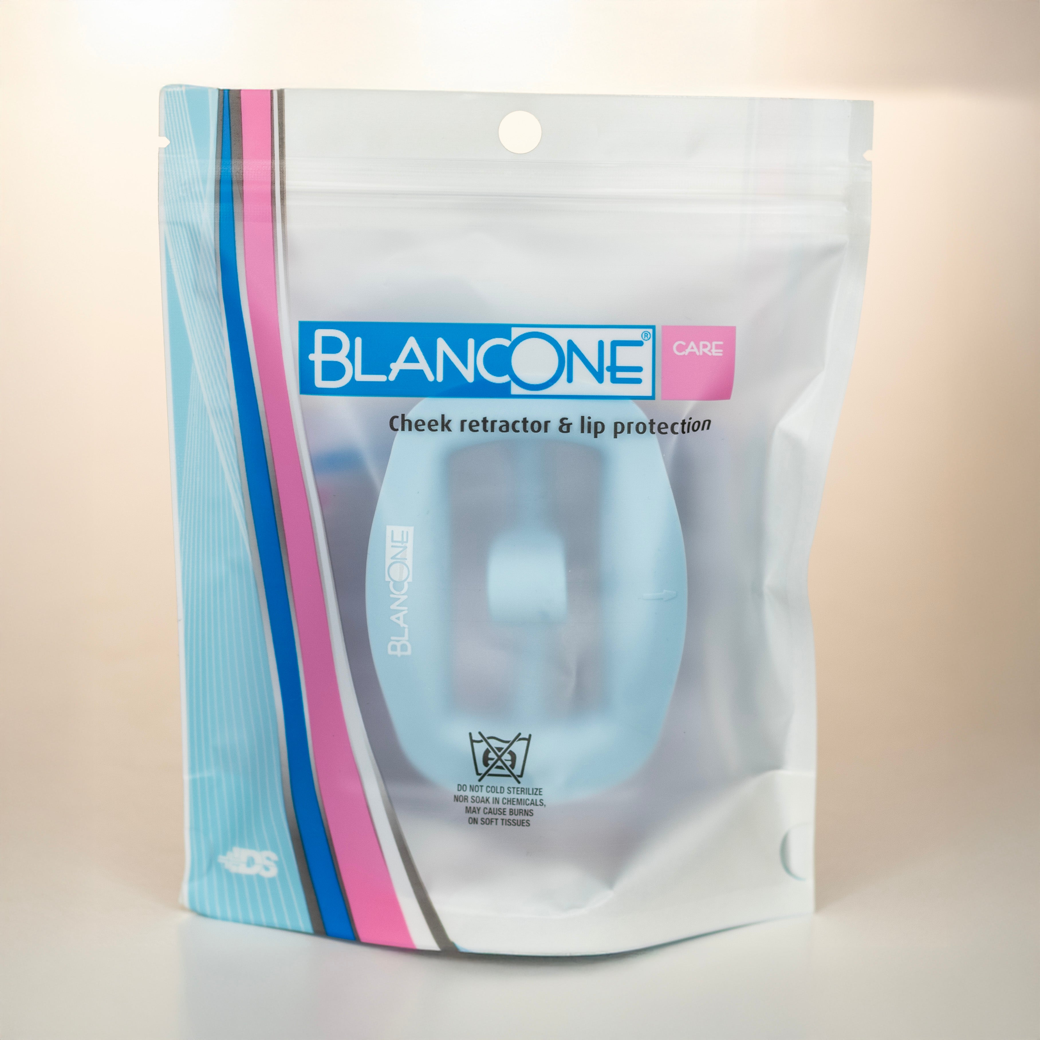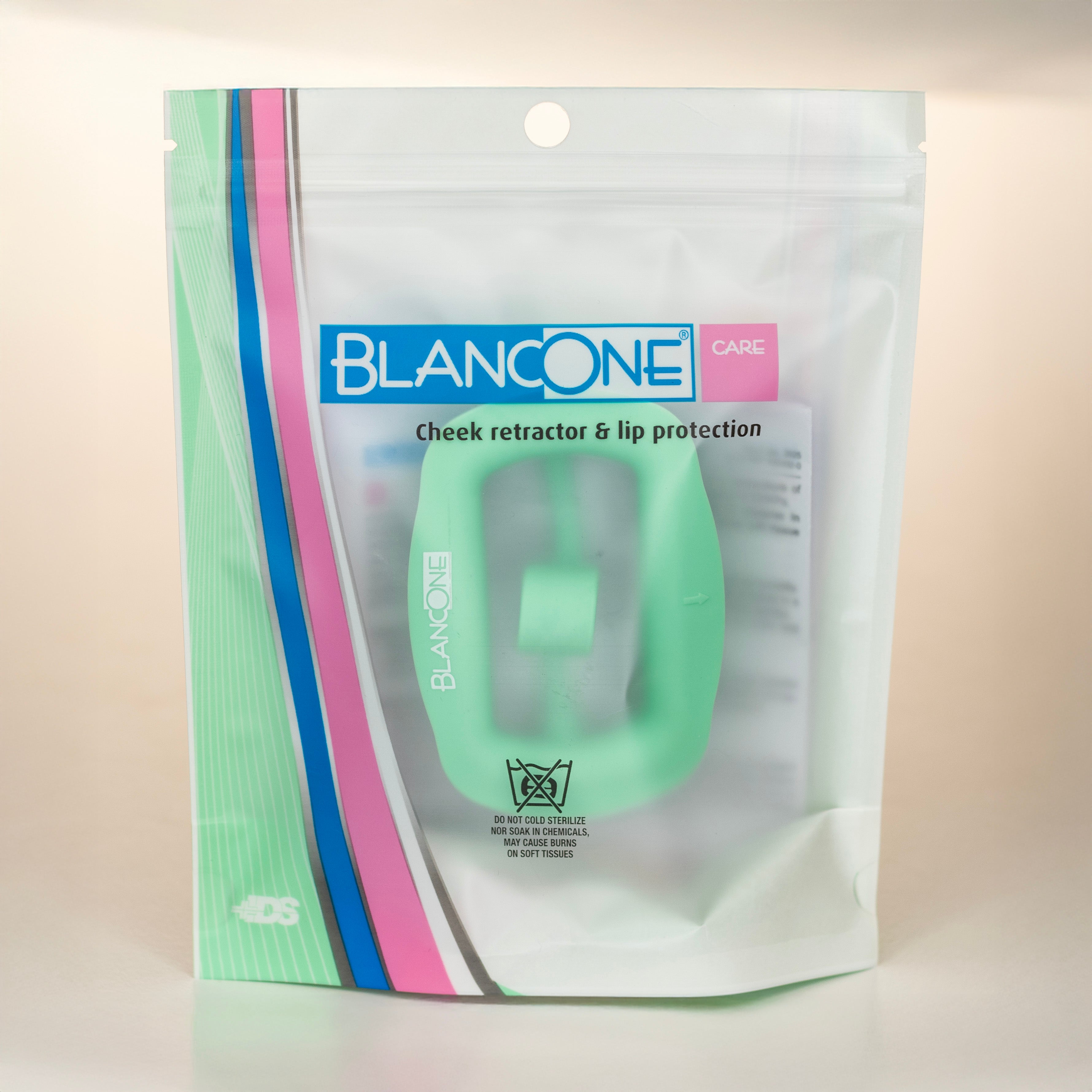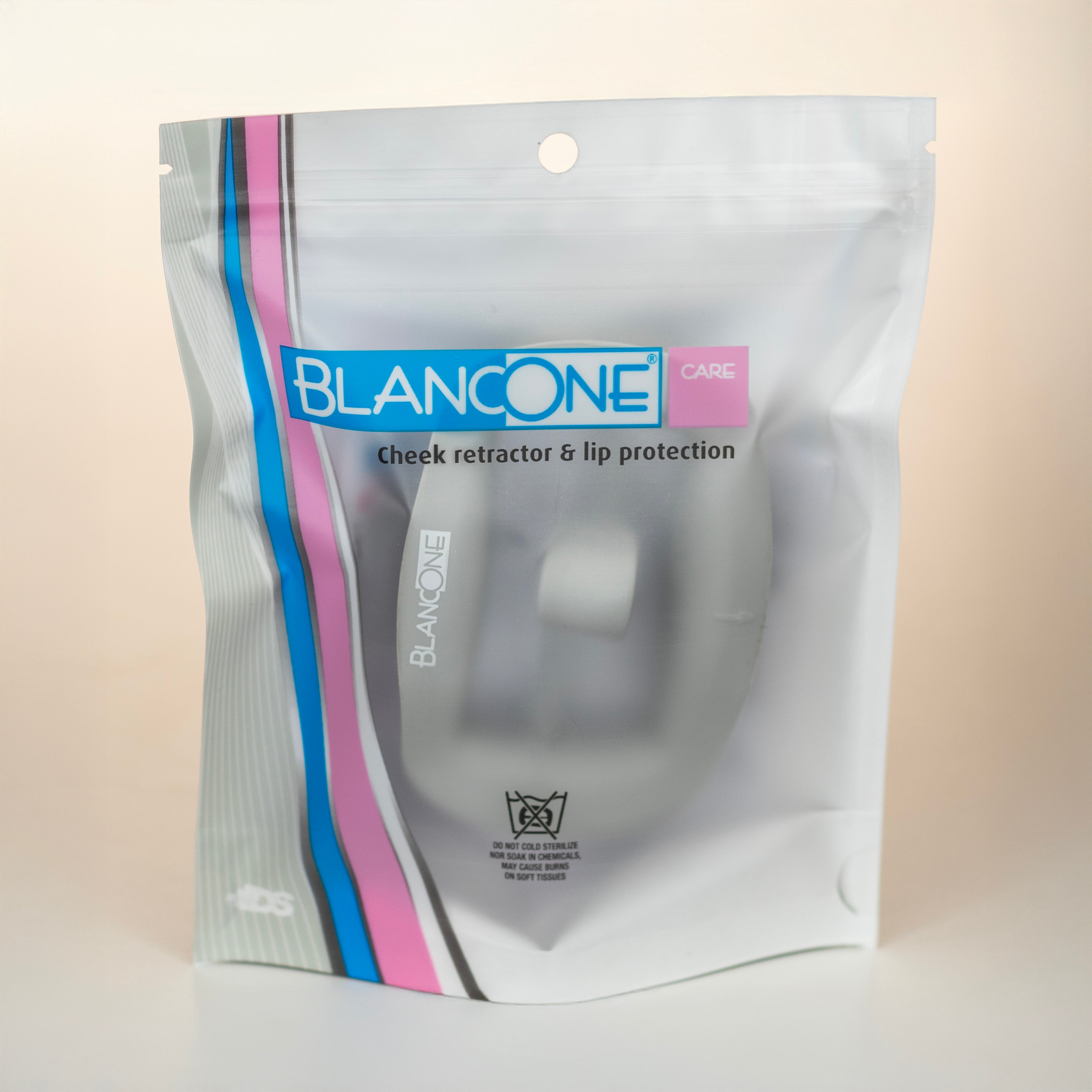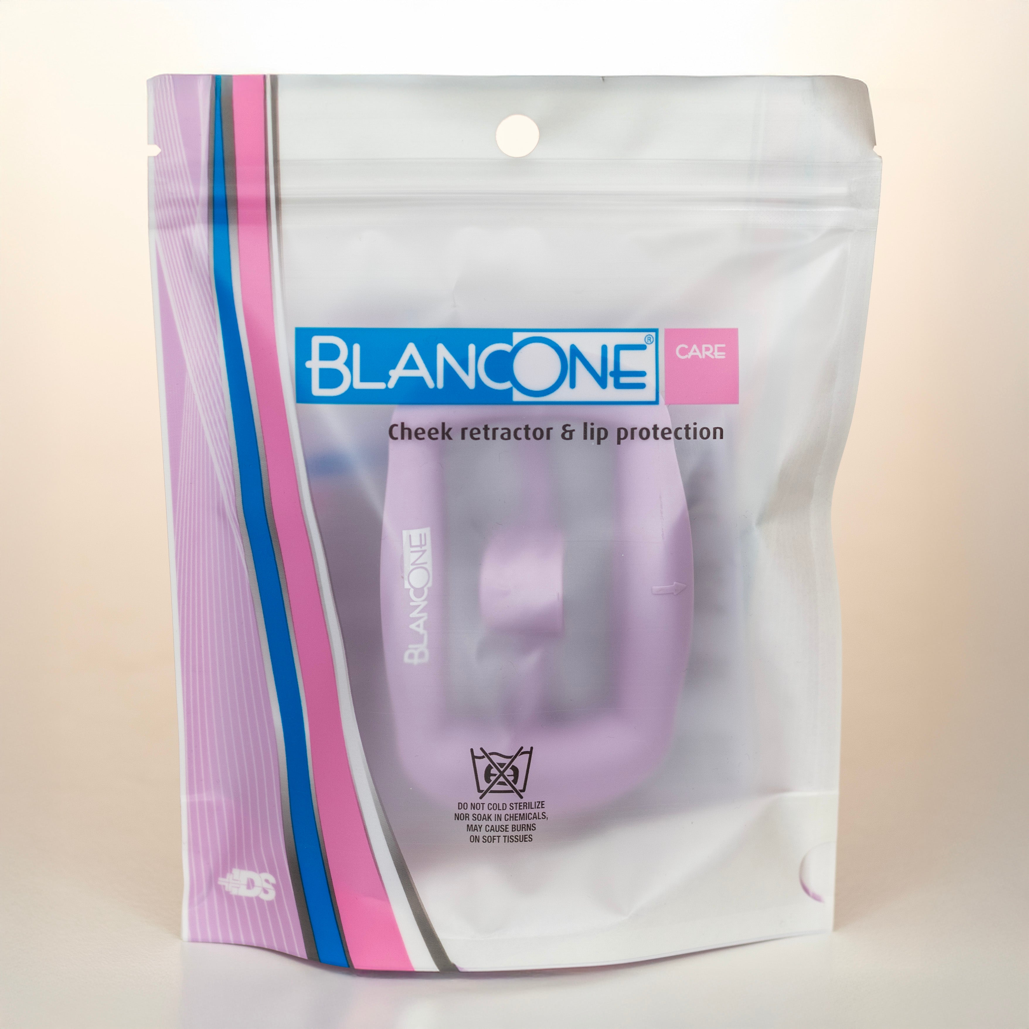 BlancOne poski-huuli- ja kieliretraktori. Pehmeä ja joustava, pitää posket, huulet ja kielen pois työskentelyalueelta. Helppo viedä ja pysyy hyvin paikollaan. Valmistettu silikonista, pesu instrumenttipesukoneessa, voidaan steriloida, ei saa liottaa puhdistus- ja desinfiointiaineissa. Koot S vihreä, M sininen, L pinkki ja XL harmaa.