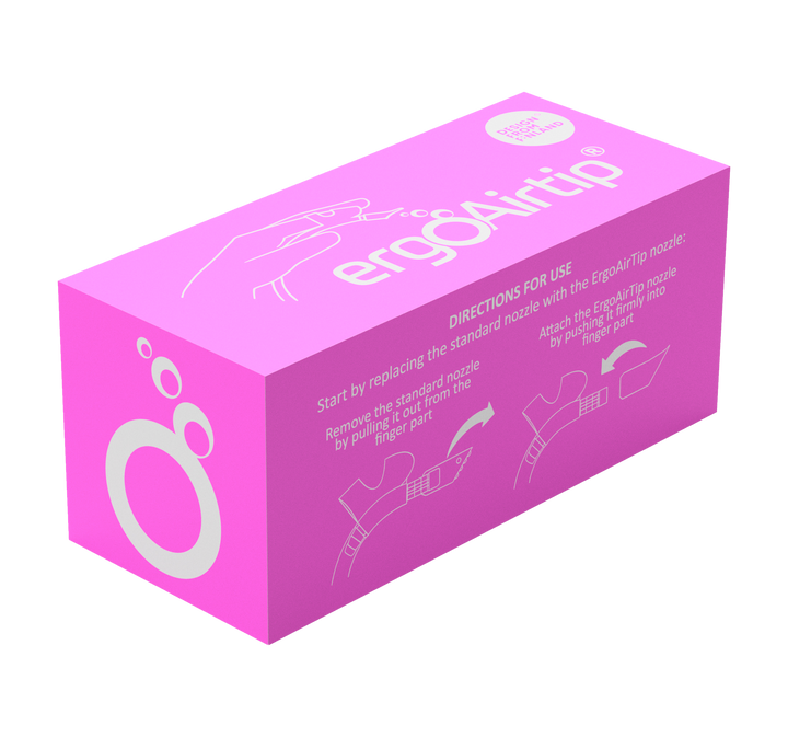 ErgoAirtip on leveämpi suutin, joka on suunniteltu erityisesti jauhepuhdistinta varten. Tämä suutin voidaan helposti vaihtaa tavallisen ErgoFinger®-suuttimen tilalle, jotta jauhe ja aerosolit voidaan poistaa tehokkaasti ja tarkasti.